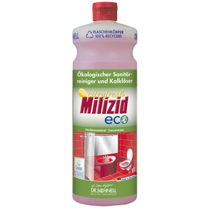 Milizid Citrofresh ECO is a highly effective, environmentally friendly cleaner for all washable surfaces. The special formula based on natural citric acid provides intensive cleaning and effortlessly removes dirt, grease, and limescale deposits. It neutralizes odors and reliably eliminates bacteria and germs. Thanks to its ecological composition, Milizid Citrofresh ECO is particularly gentle on the environment and contains no chlorine-based or aggressive chemicals. The cleaning solution is biodegradable and meets the highest environmental standards. The practical 1-liter bottle with a spray head allows for easy application and precise distribution of the cleaner. Whether in the home, office, or public facilities – with Milizid Citrofresh ECO you get an effective cleaning solution that also protects the environment. Treat yourself and your surroundings to a hygienic and fresh clean with Milizid Citrofresh ECO.